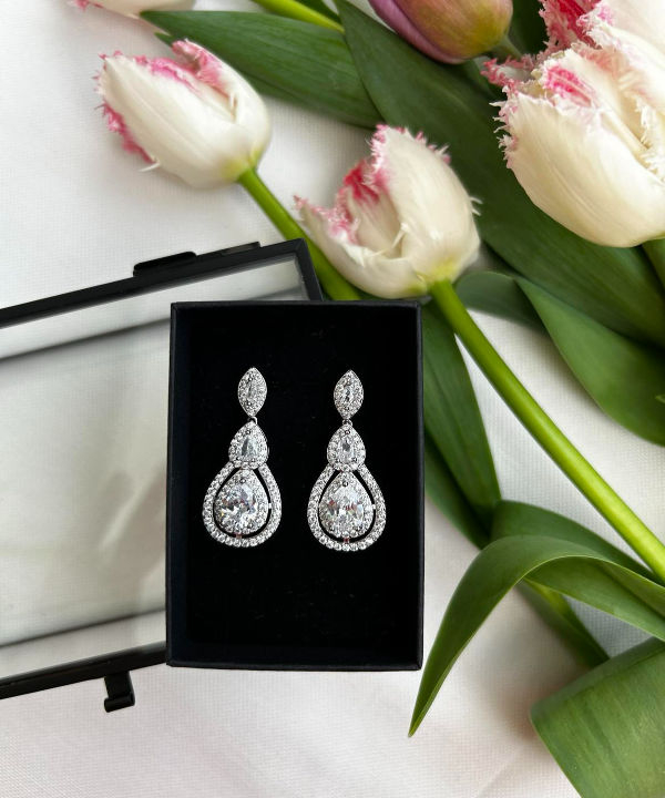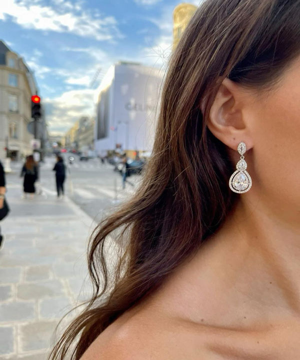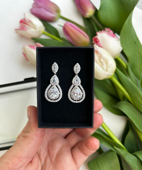 Un model elegant si fin, potriviti pentru ocazii dar si tinute office, vin pe lobul urechii cu un aspect feminin si minimalist, cu cristale sclipitoare Zirconiu Cubic AAA+. Cerceii sunt placati cu Aur alb, nu oxideaza, non-alergici. Nu sunt grei. Tip produs: cercei Dimensiune cercei: lungim: 4 cm Material: Otel inoxidabil placat cu Aur alb. Cristale: Zirconiu Cubic AAA+ Culoare: Argintiu Continut pachet: 1 x pereche cercei; 1x servetel de intretinere bijuterii; 1 x cutie bijuterii personalizata Sistem de inchidere: tija cu surub.
