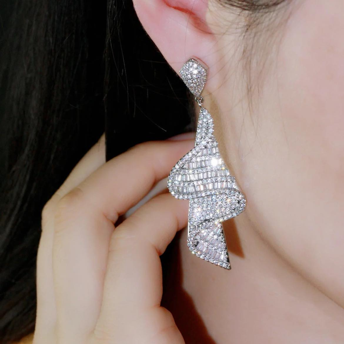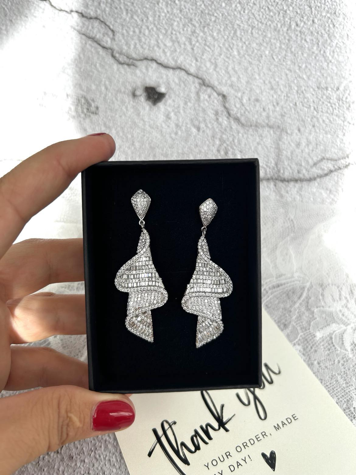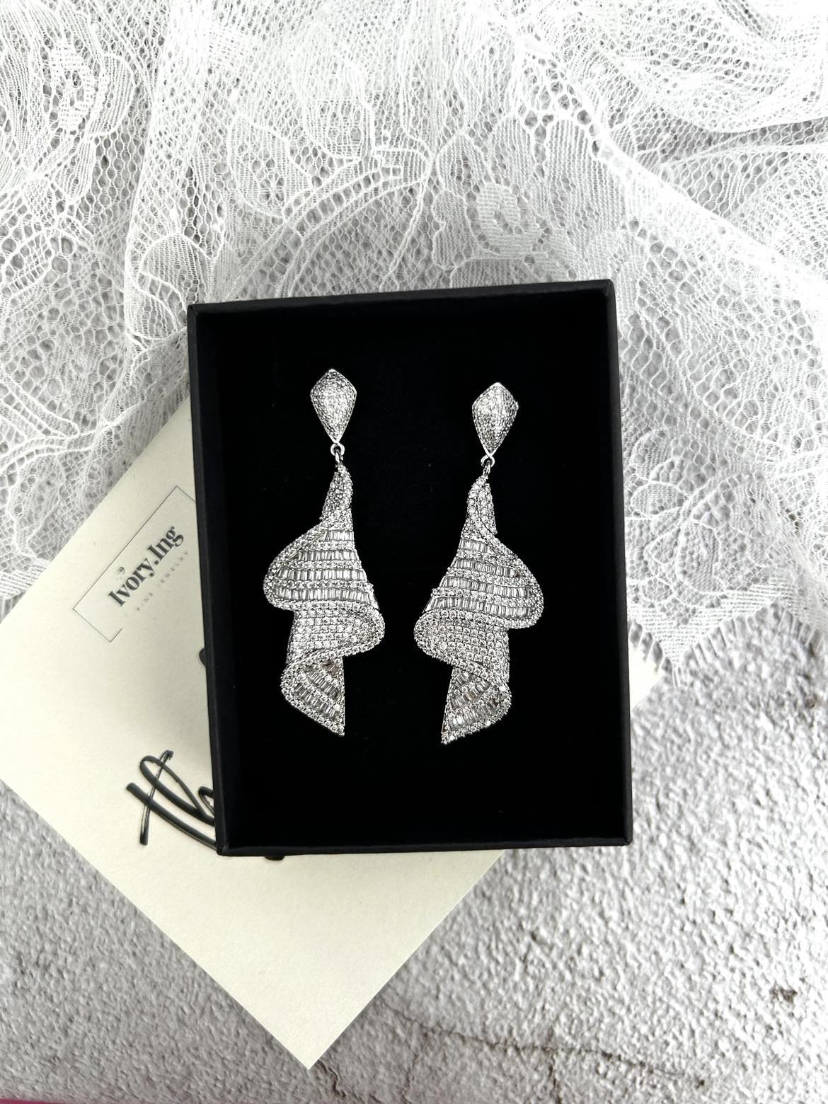 Un model elegant si feminin, model cazator, plin cu cristale sclipitoare Zirconiu Cubic AAA+. Lungime si sclipirea cerceilor sigur va pune in evidenta tinuta dvs. Cerceii sunt placati cu Aur alb 14K, nu oxideaza, non-alergici. Nu sunt grei. Tip produs: cercei Dimensiune cercei: 6,2 cm Material: Otel inoxidabil placat cu Aur alb 14K. Cristale: Zirconiu Cubic AAA+ Culoare: Argintiu Continut pachet: 1 x pereche cercei; 1x servetel de intretinere bijuterii; 1 x cutie bijuterii personalizata Sistem de inchidere: tija cu surub.