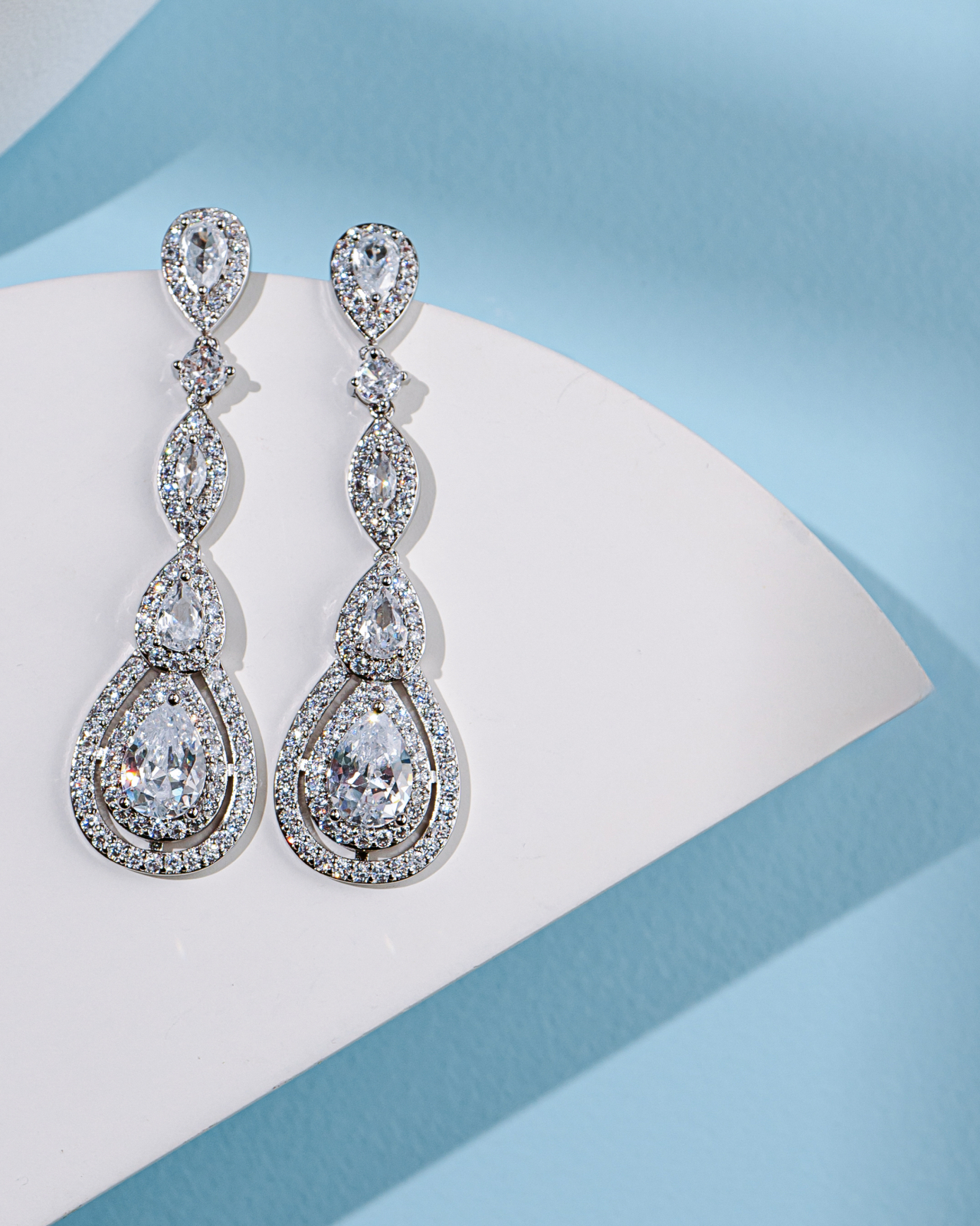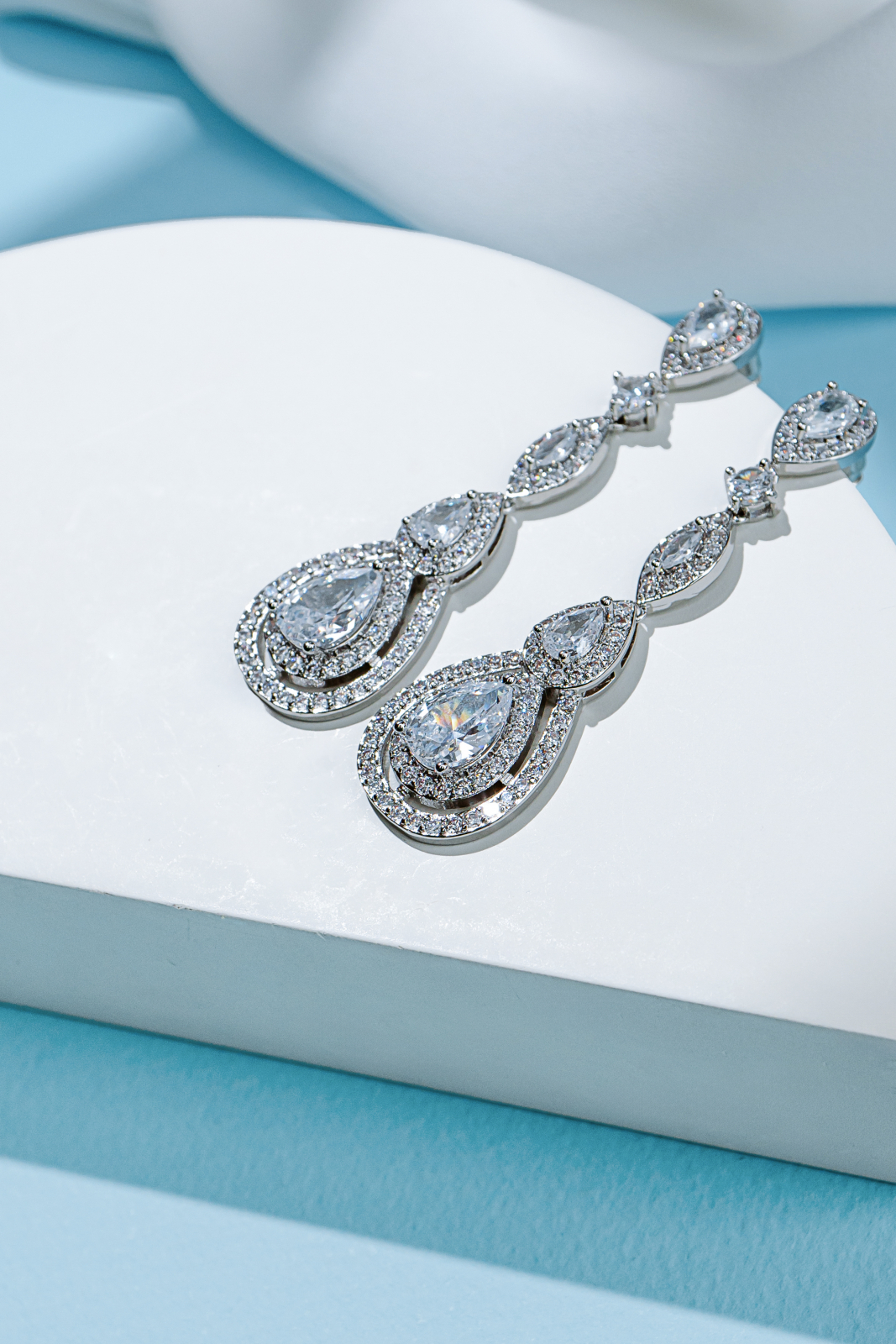 Un model elegant si feminin, argintii, cu cristale sclipitoare Zirconiu Cubic AAA+ in forma de picatura. Lungime si sclipirea cerceilor sigur va pune in evidenta tinuta dvs. Cerceii sunt placati cu Argint, nu oxideaza, non-alergici. Nu sunt grei. Tip produs: cercei Dimensiune cercei: 6,5 cm x 1,5 cm Material: Otel inoxidabil placat cu Argint. Cristale: Zirconiu Cubic AAA+ Culoare: Argintiu Continut pachet: 1 x pereche cercei; 1x servetel de intretinere bijuterii; 1 x cutie bijuterii personalizata Sistem de inchidere: tija cu surub.