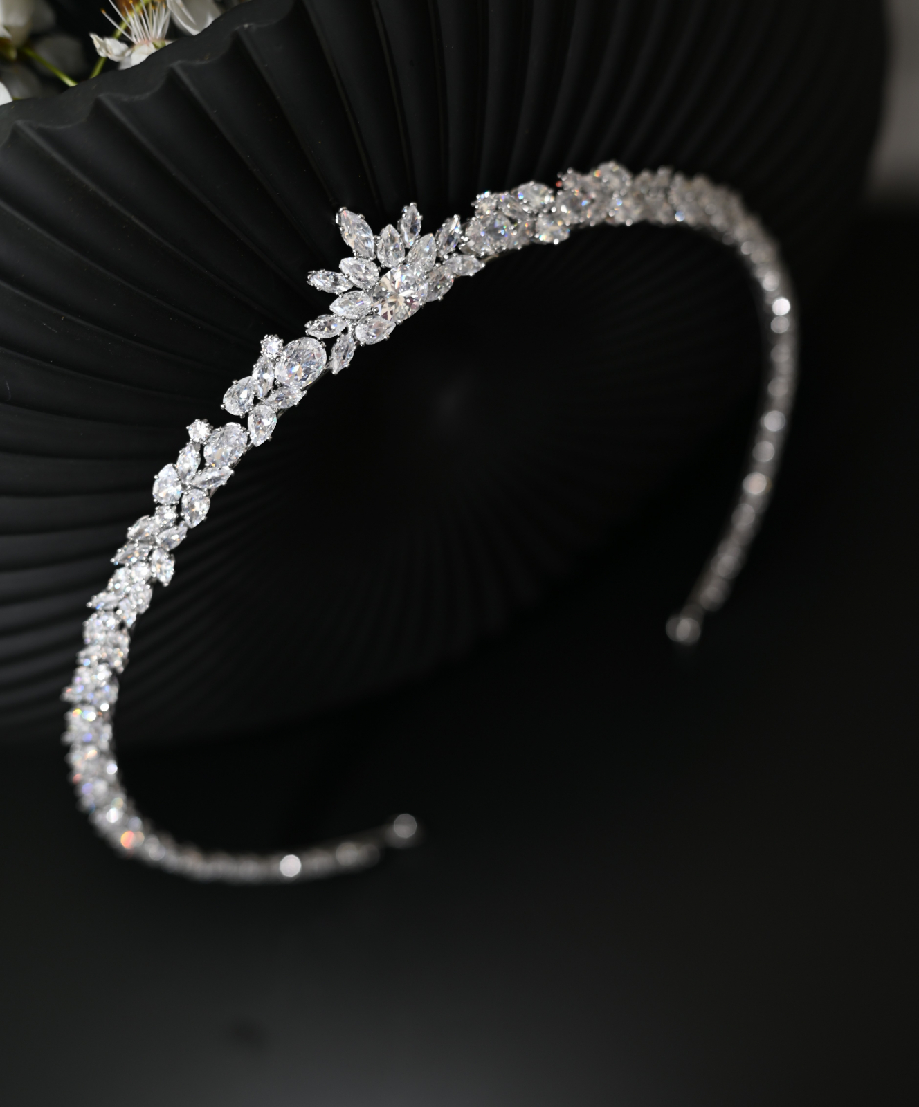 Cristalele, atent montate, captează lumina într-un mod spectaculos, oferind un efect sclipitor și luxos. Structura sa flexibilă și ușoară permite o fixare confortabilă, adaptându-se armonios oricărui tip de coafură. Această diademă reprezintă combinația ideală între eleganță clasică și strălucire modernă, adăugând un plus de grație și rafinament purtătoarei sale.