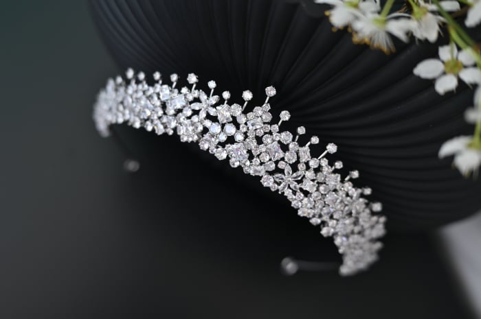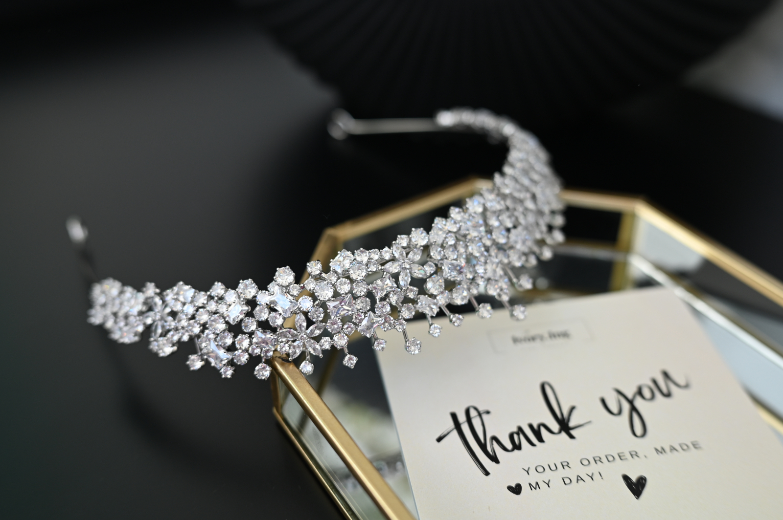 Continut pachet: 1 x Tiara; 1x servetel de intretinere bijuterii; 1 x cutie personalizata