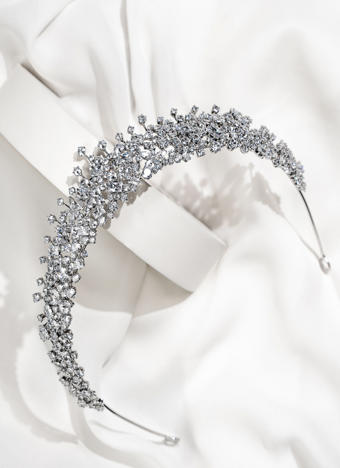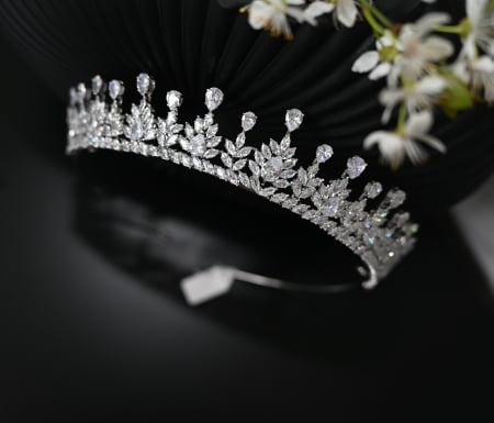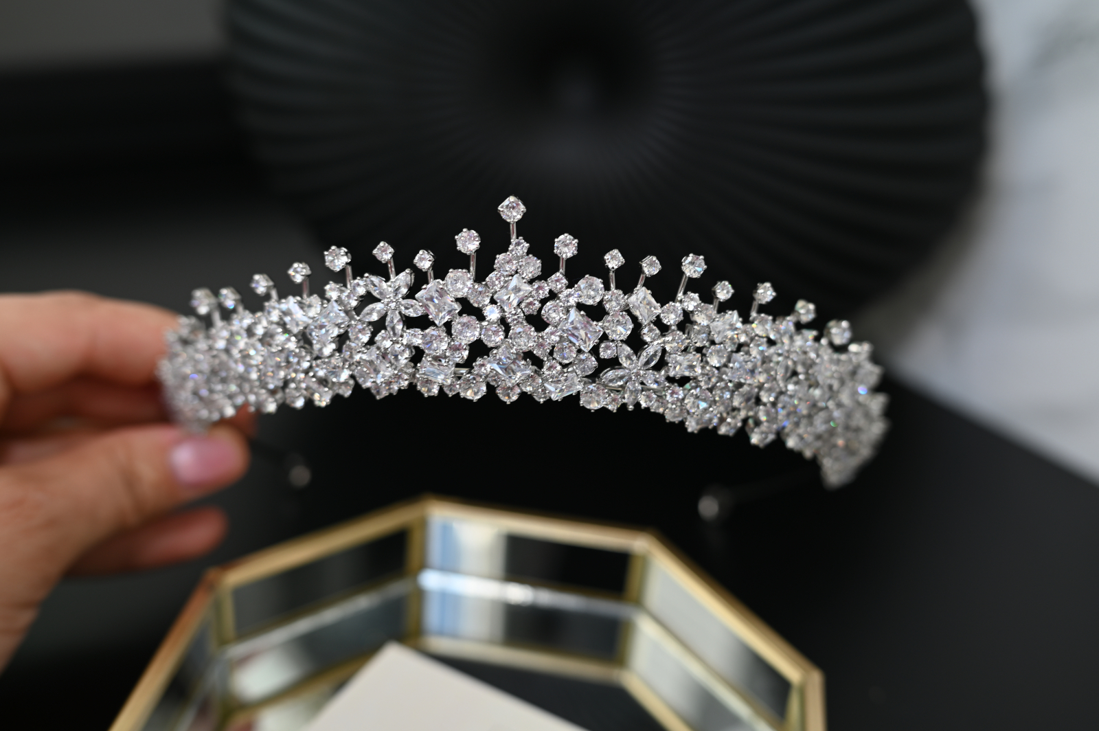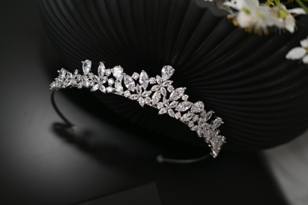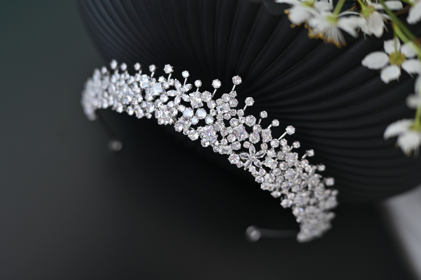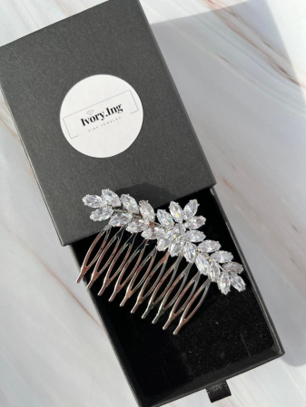 O adevarata bijuterie de par pentru viitoarele mirese si nu numai, decorata cu cristale Zirconiu Cubic 5A+ de diferite forme, din abundenta ofera sclipire intensa si eleganta indiferent de tipul coafurii: coc, bucle naturale. Delicata si feminina, te face sa te simti ca o printesa.