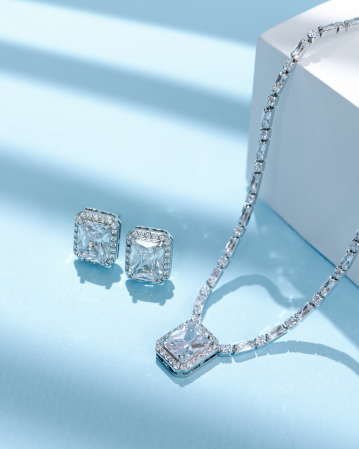 Material: Otel inoxidabil rodiat. Placaj: Aur alb 14K, cristale: Zirconiu Cubic 5A+